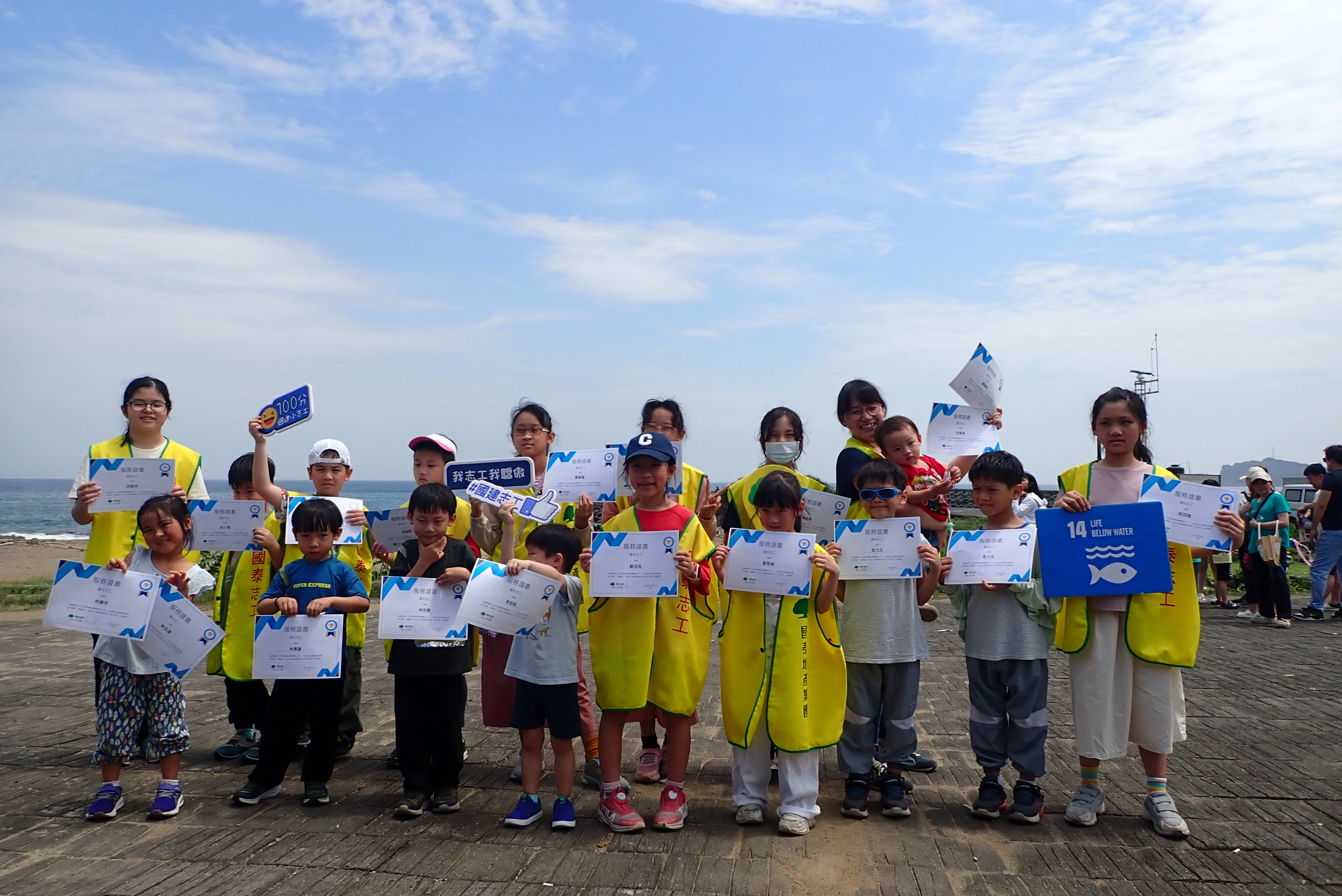 這次活動聚集近百位志工與家屬,最年幼僅兩歲、最資深近七十歲,三代同堂共同參與海岸清理的畫面,他們不怕曬、不怕苦、努力淨灘的背影成為最動人的風景。孩子們從遊戲體驗與撿拾經驗中學習海洋廢棄物議題,長輩則以行動支持下一代的永續教育。這樣的「跨世代共學」,讓環境保護不再只是知識傳遞,而是情感的連結。活動最後,特別頒獎給熱心投入的志工小朋友,感謝他們身體力行的參與與榜樣力量。