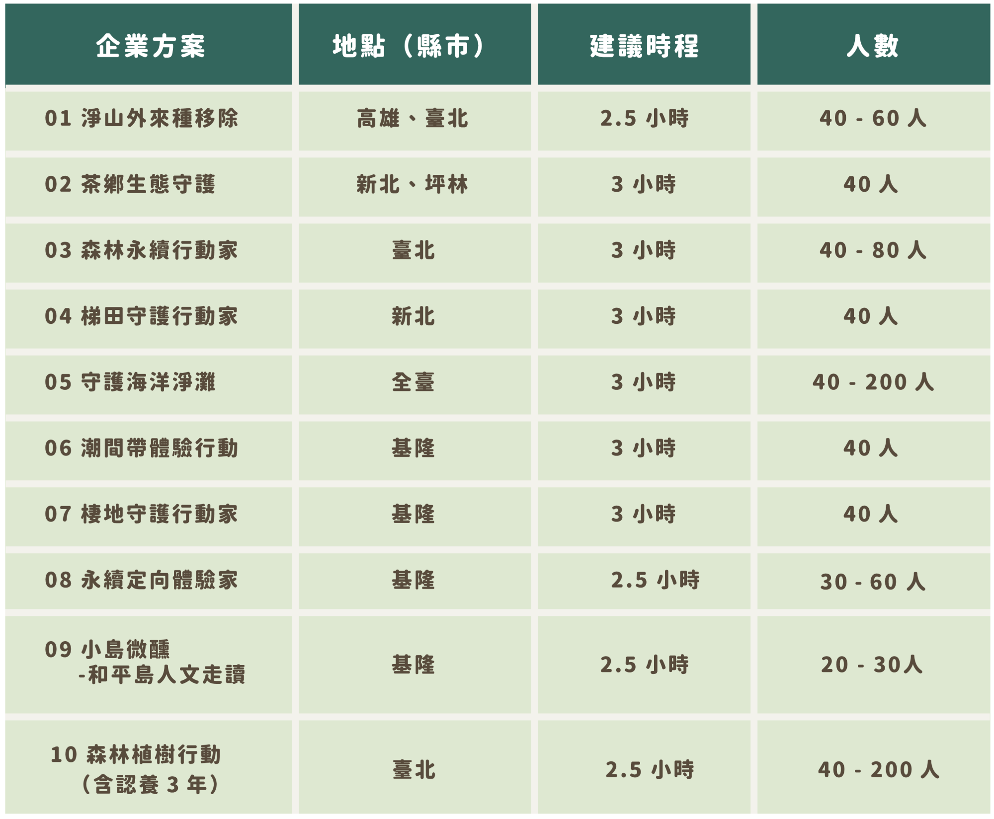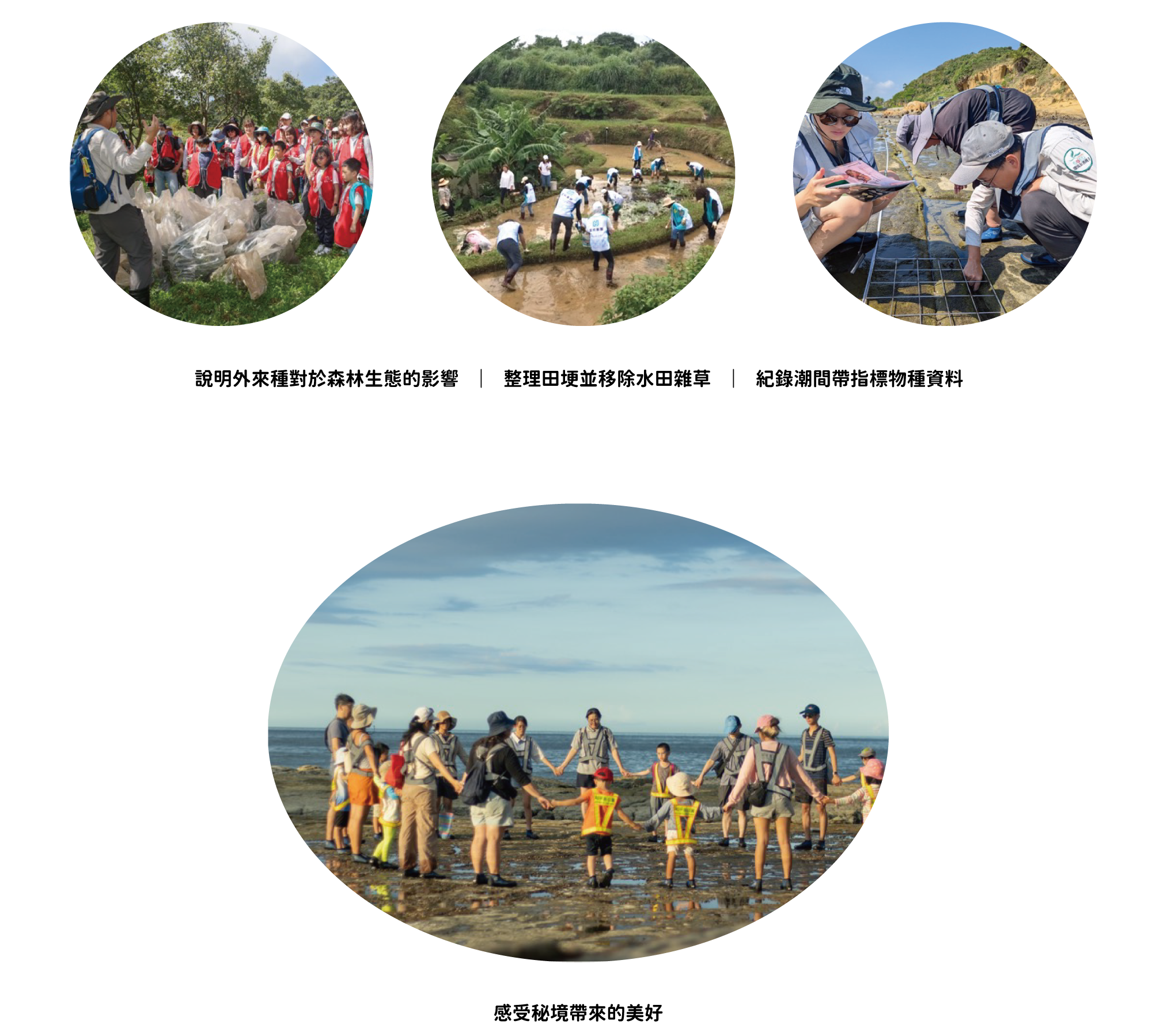 環境友善種子與企業、政府機關、在地團體合作,參考自然相關財務揭露(TNFD)之建議,規劃結合保育行動、研究監測、教育推廣之各類型方案,透過跨域合作串聯眾人之力,共同推動生物多樣性之保育與教育推廣。