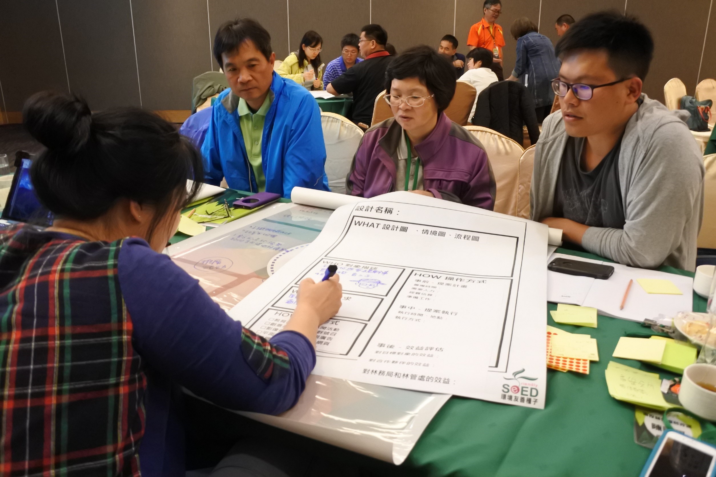 友種以促進保安林相關業務夥伴之間的經驗傳承、業務交流、思維轉化為切入點,邀請經驗豐富的林務局夥伴,以及在與社區民眾合作、行銷傳播上有實績的多位講師前來分享,並結合友種團隊擅長的設計思考手法,帶領林務局的夥伴進行一場關於創新在地合作模式的創意發想。